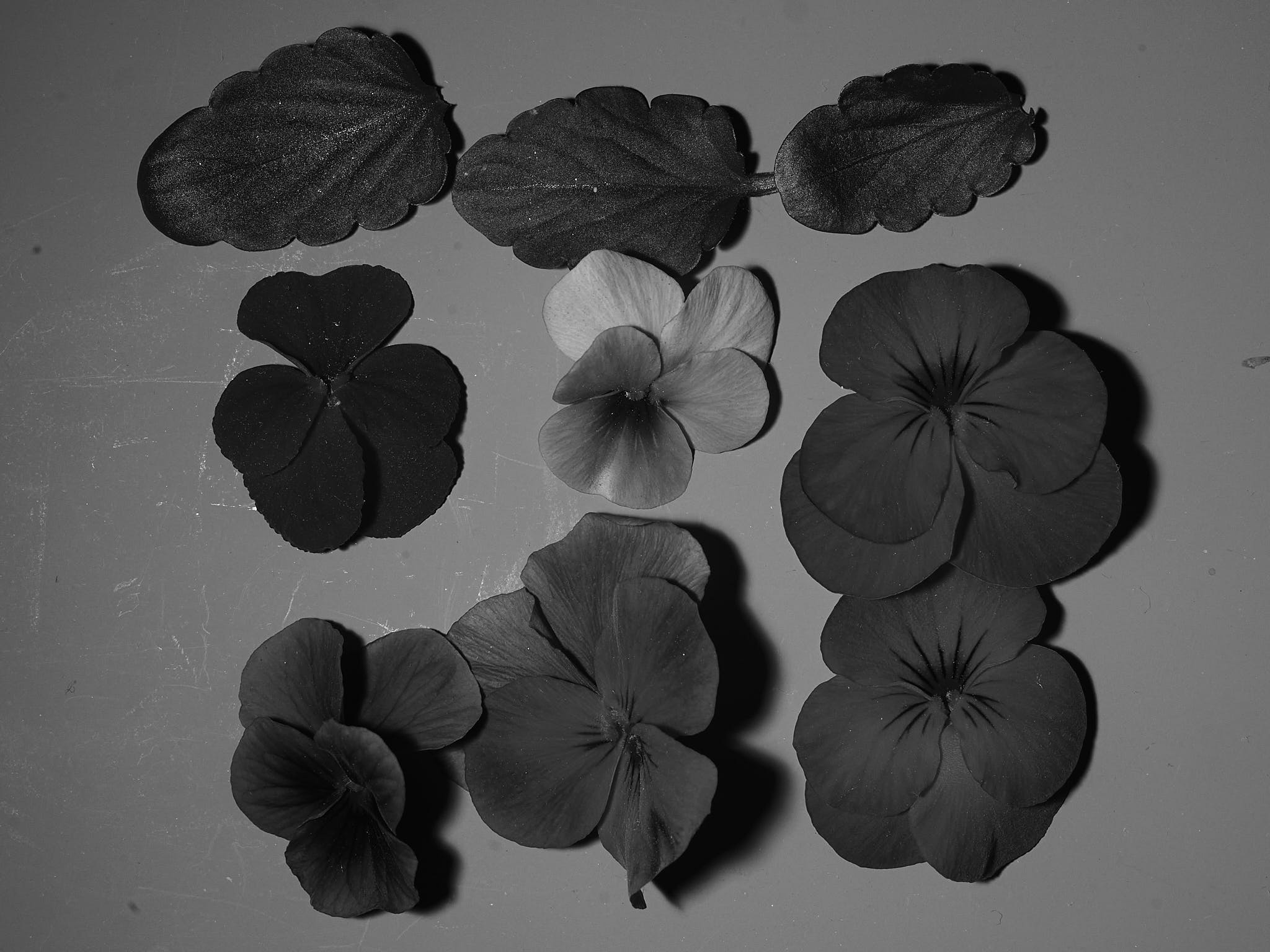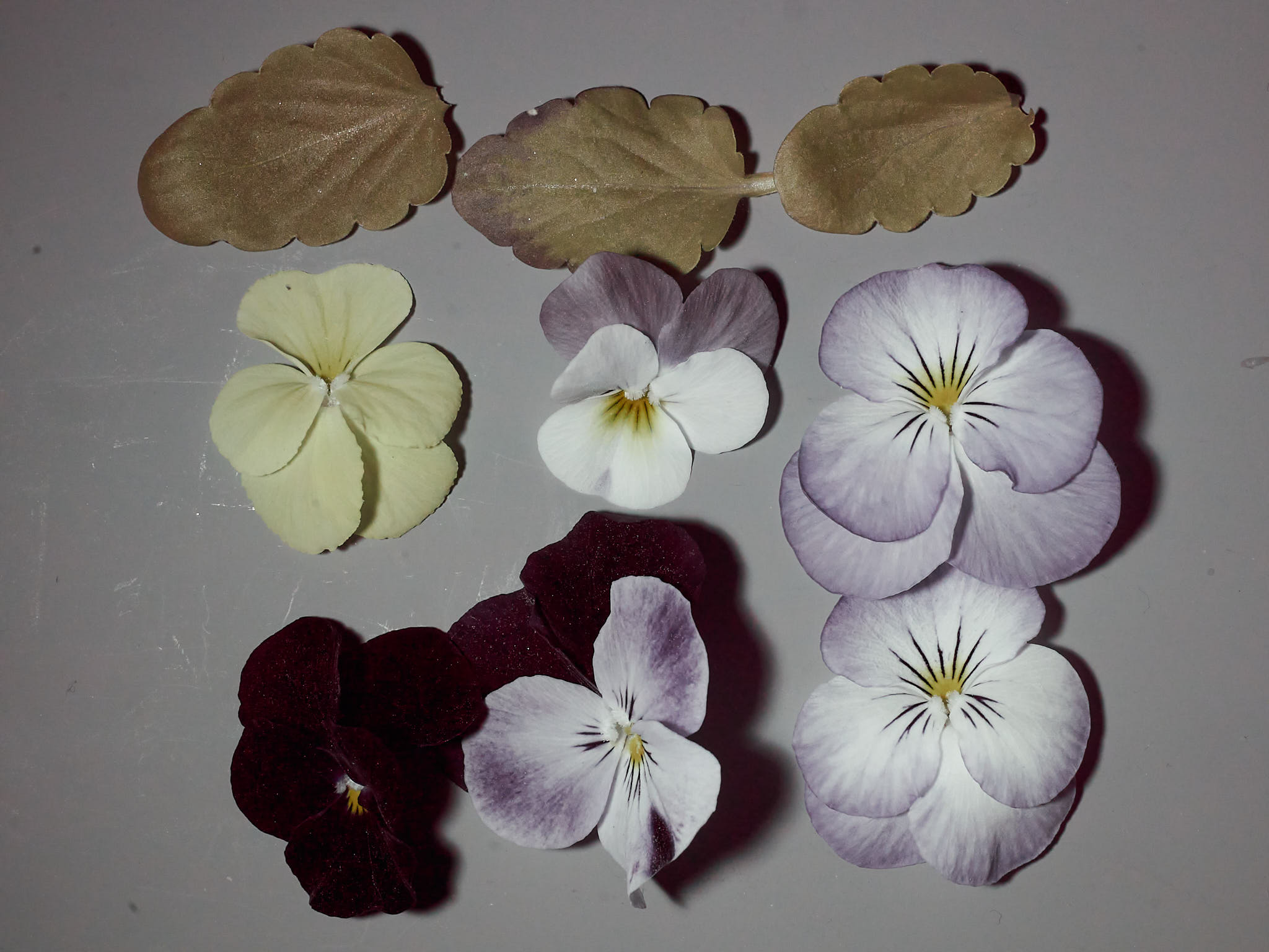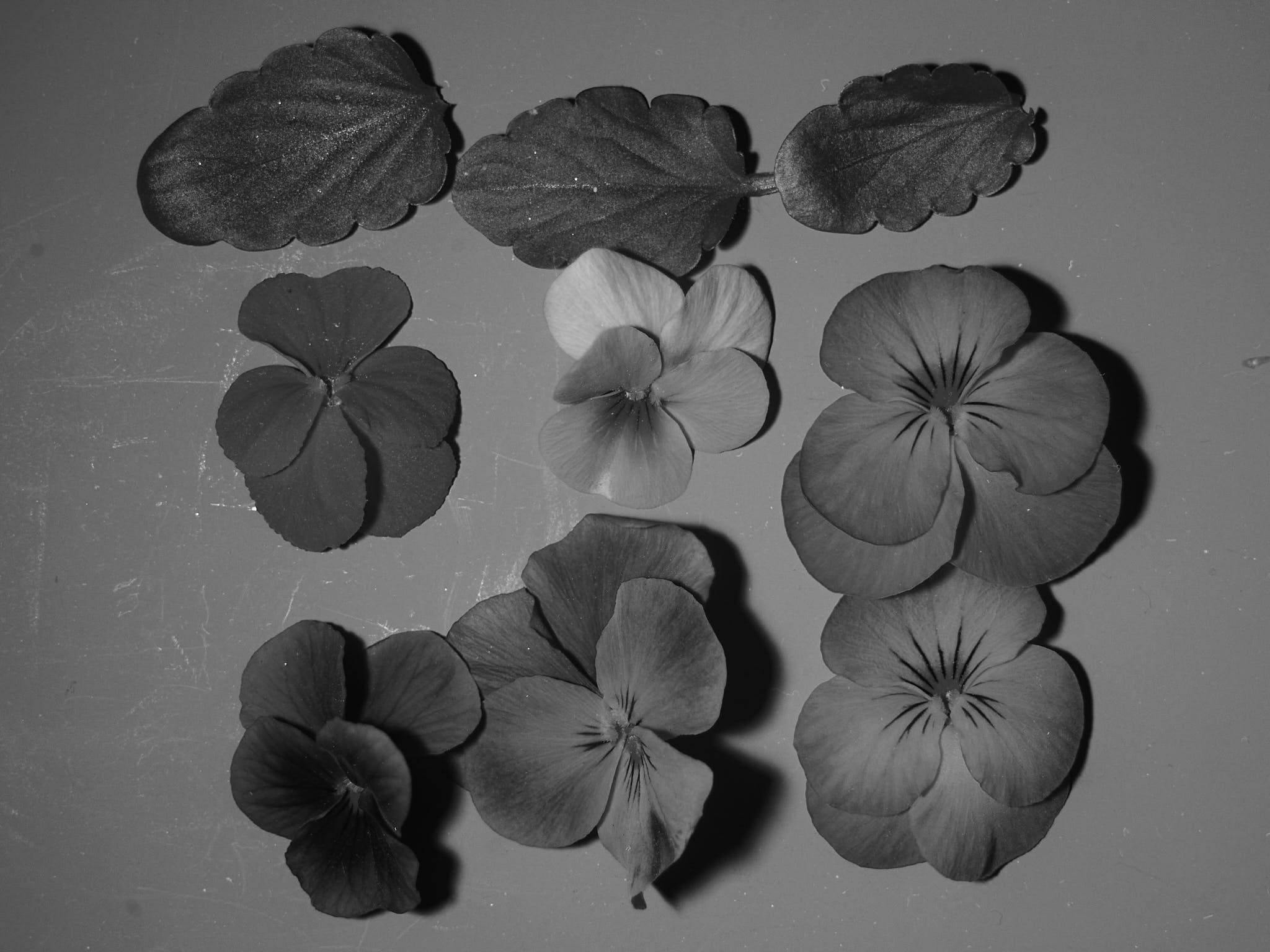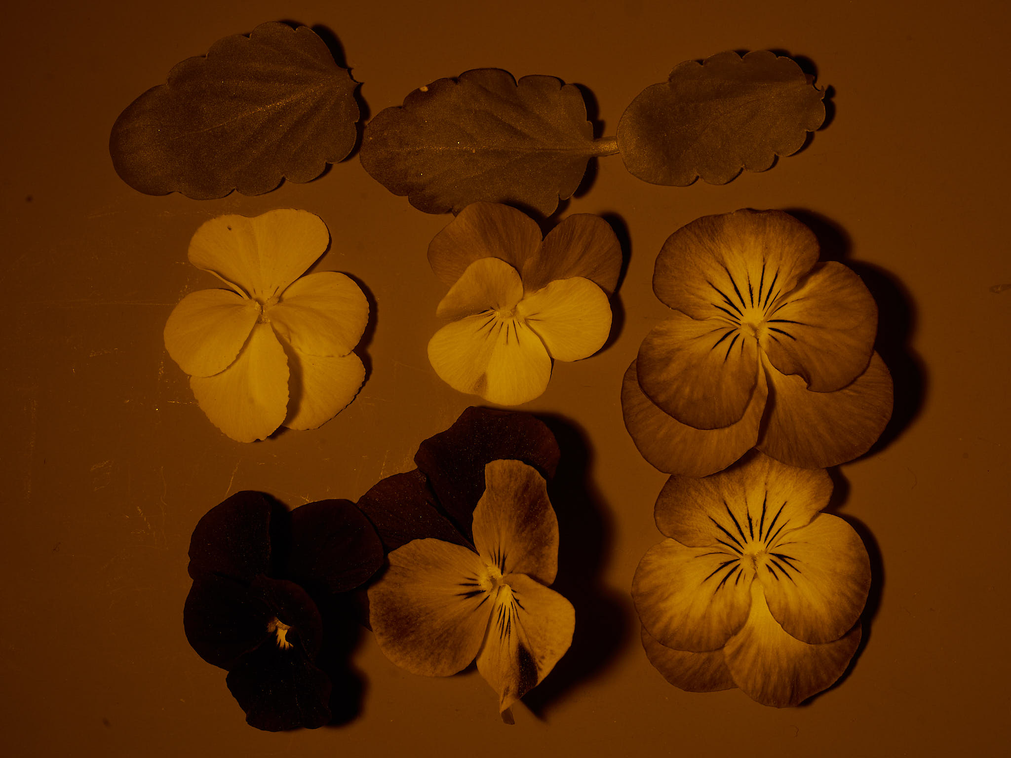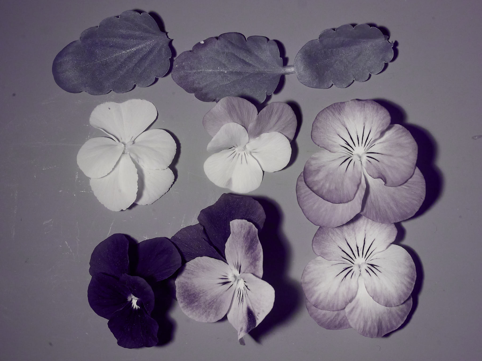 For the first test I picked four pansy flowers from the balcony. For each image I also took images with the LED switched off in the same room as dark control (Figure 4).