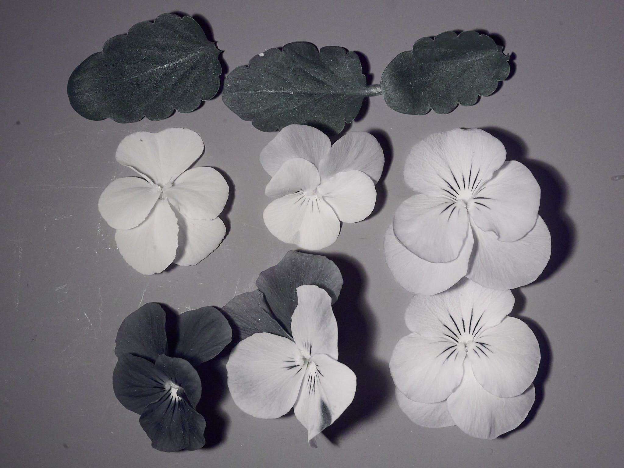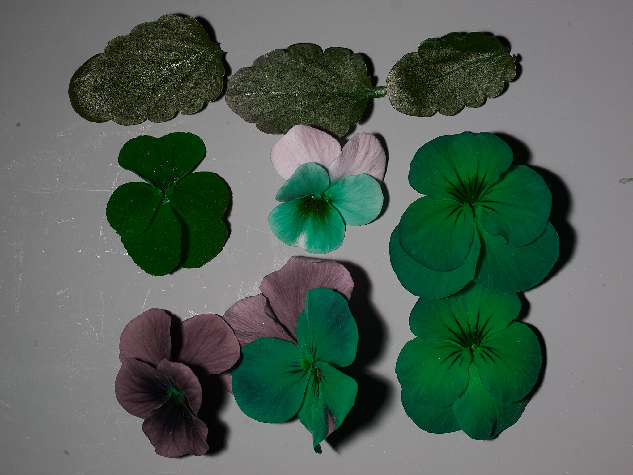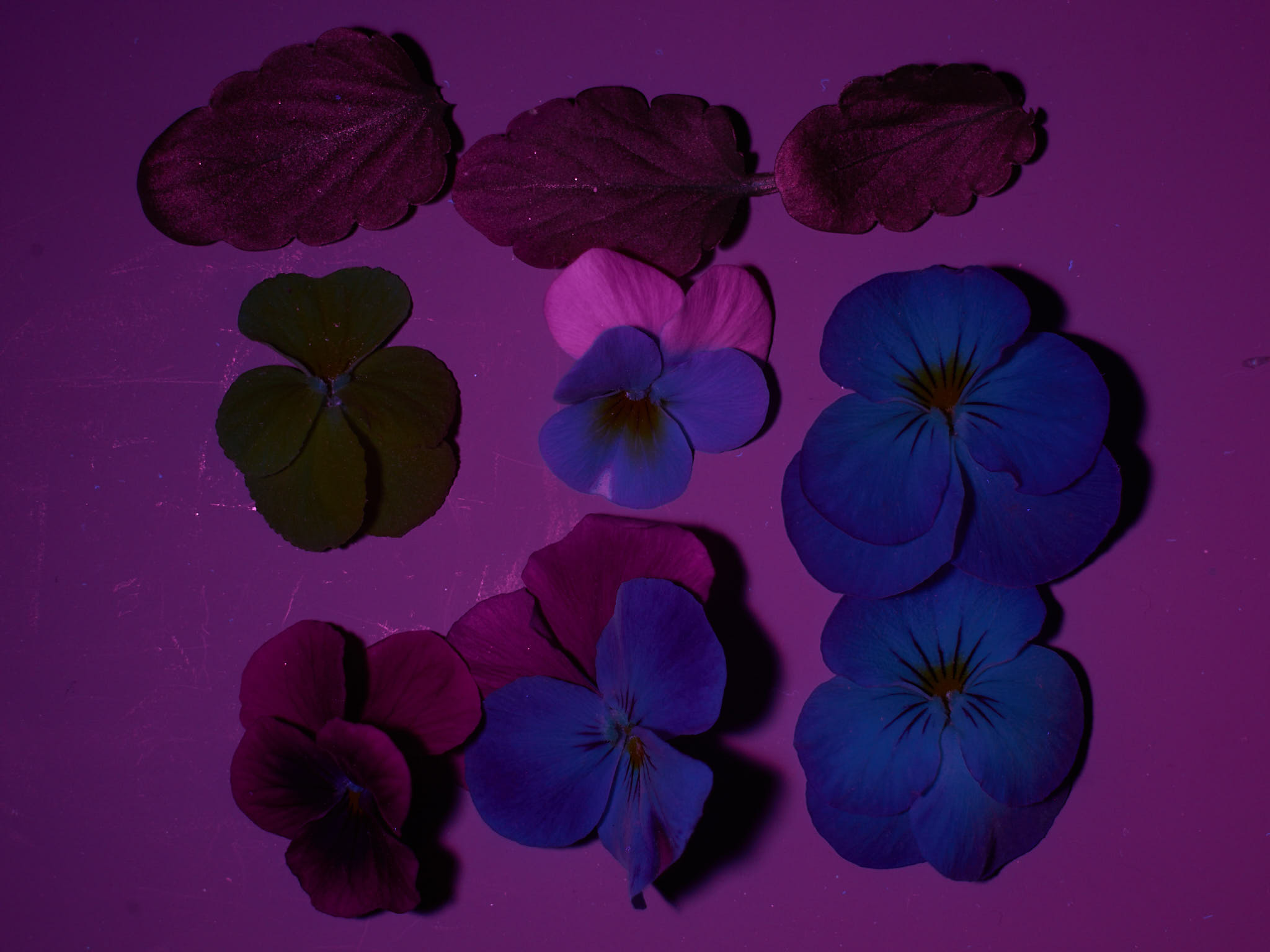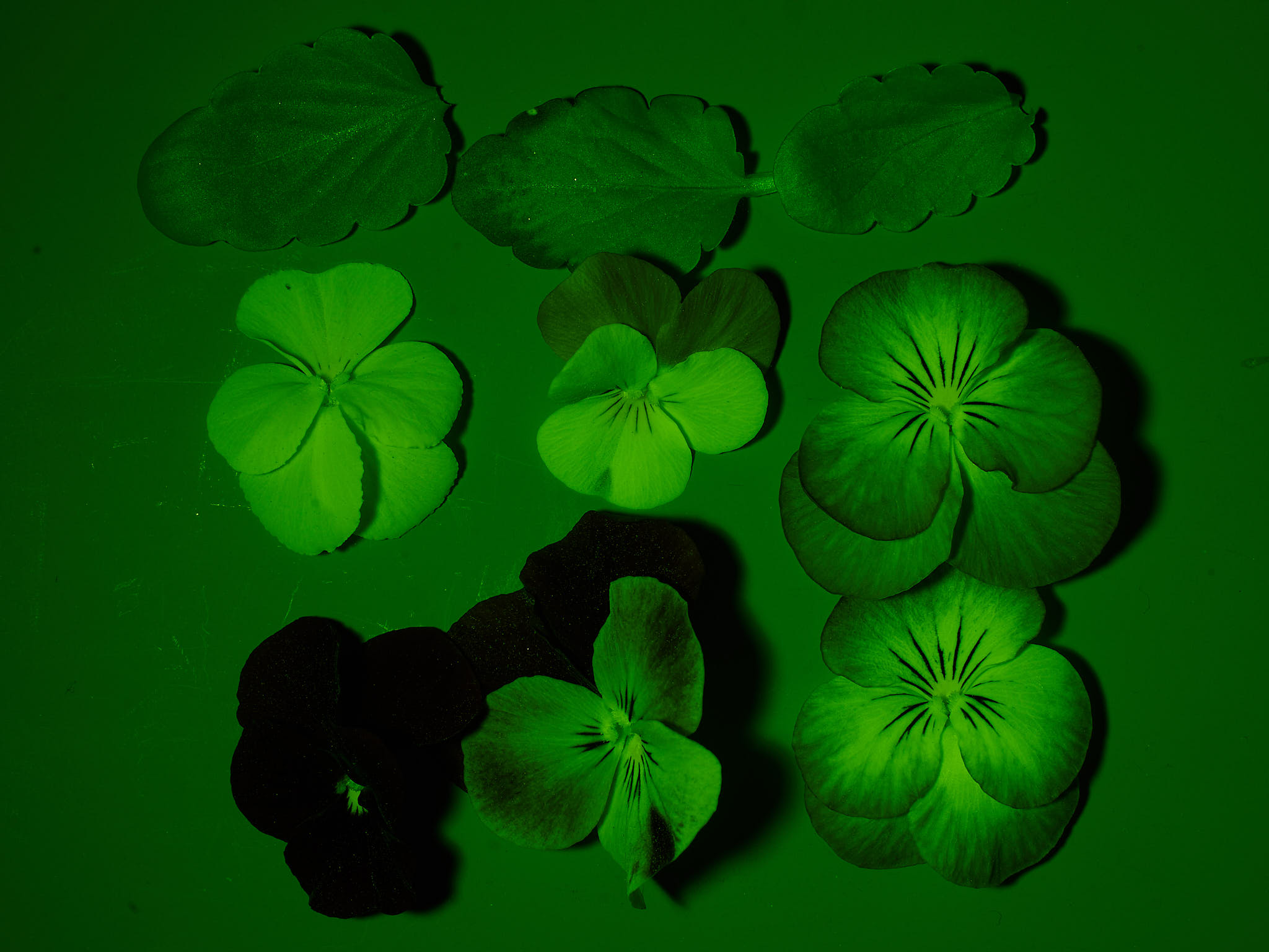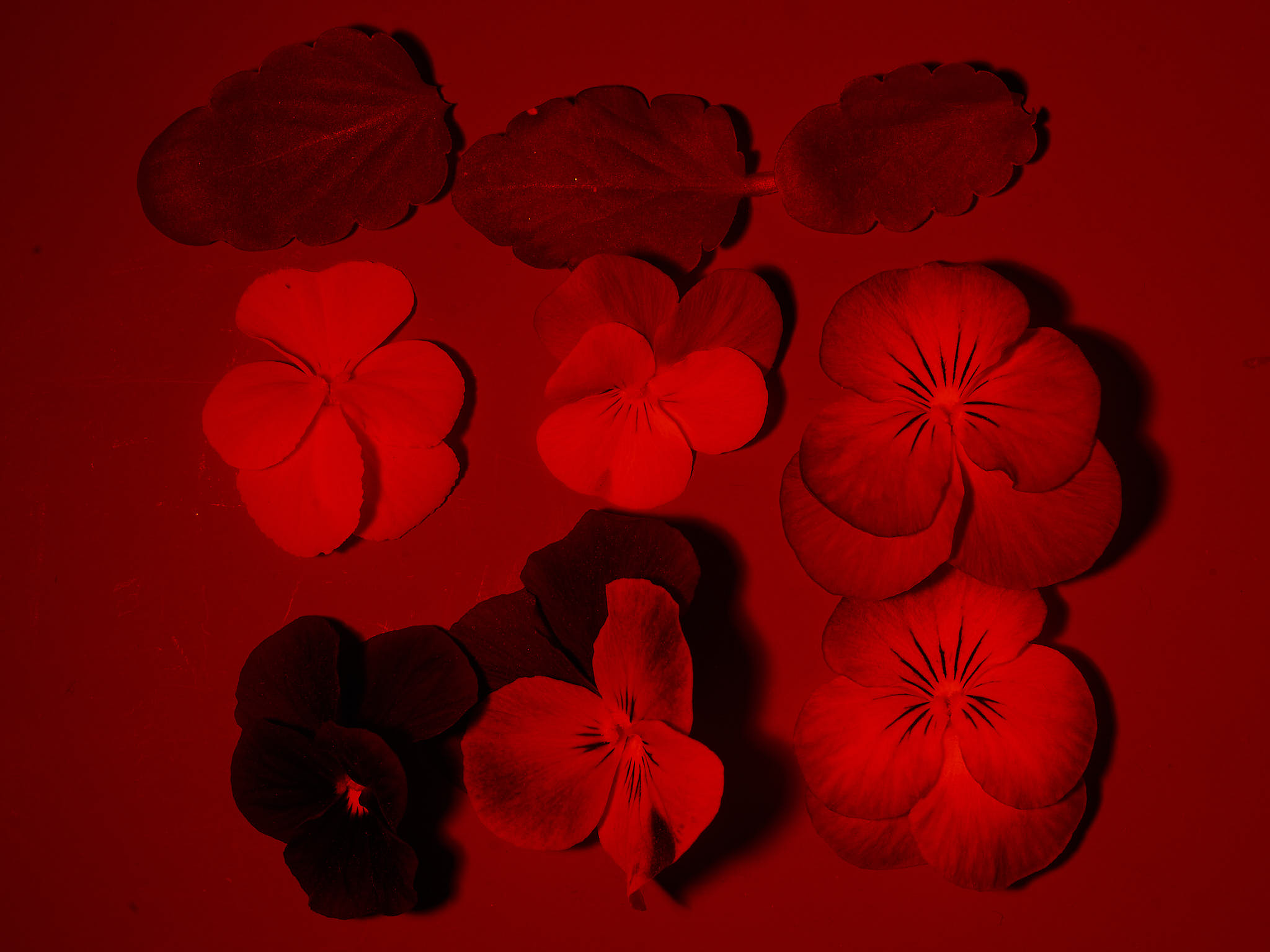 For the first test I picked four pansy flowers from the balcony. For each image I also took images with the LED switched off in the same room as dark control (Figure 4).