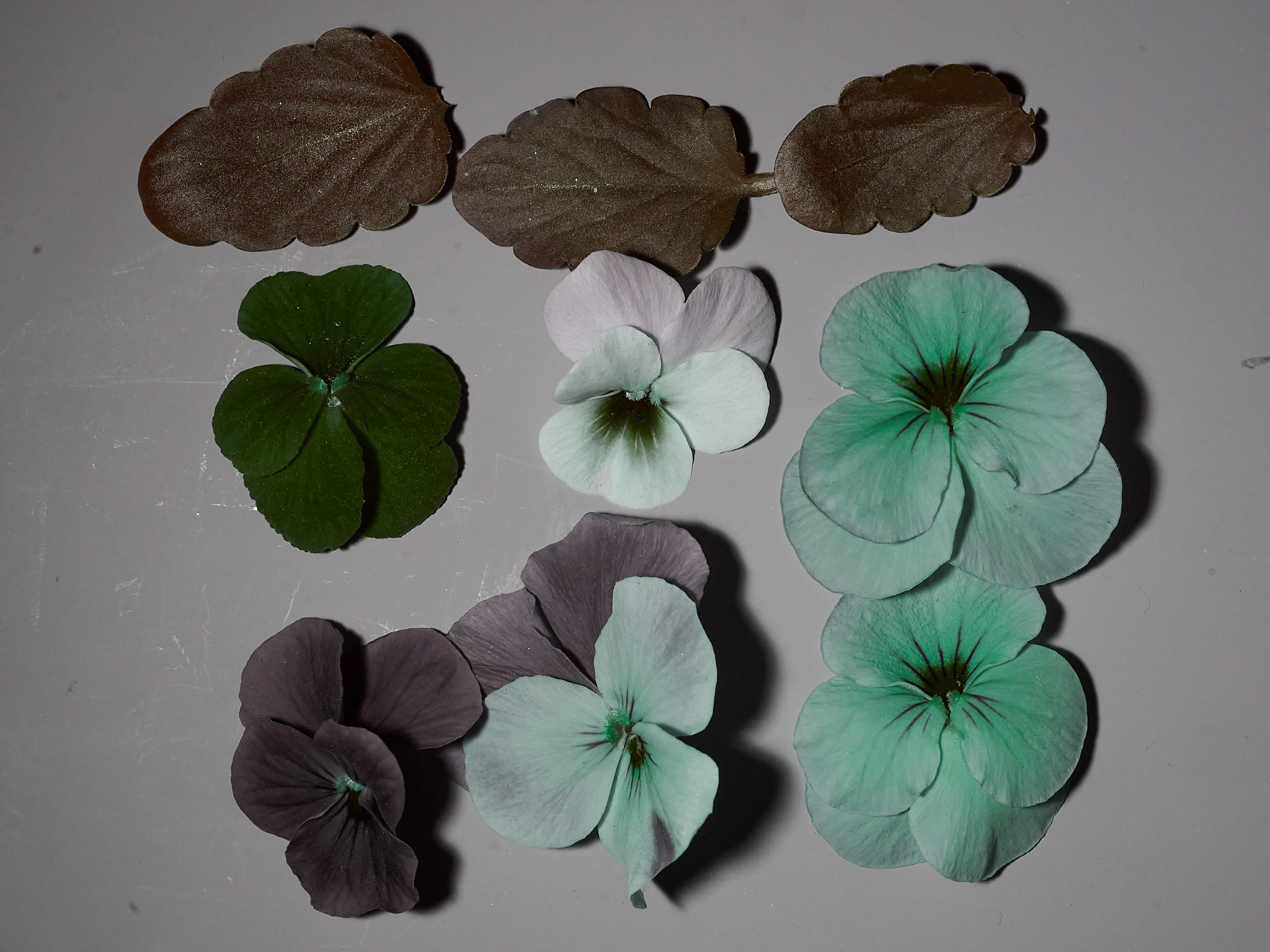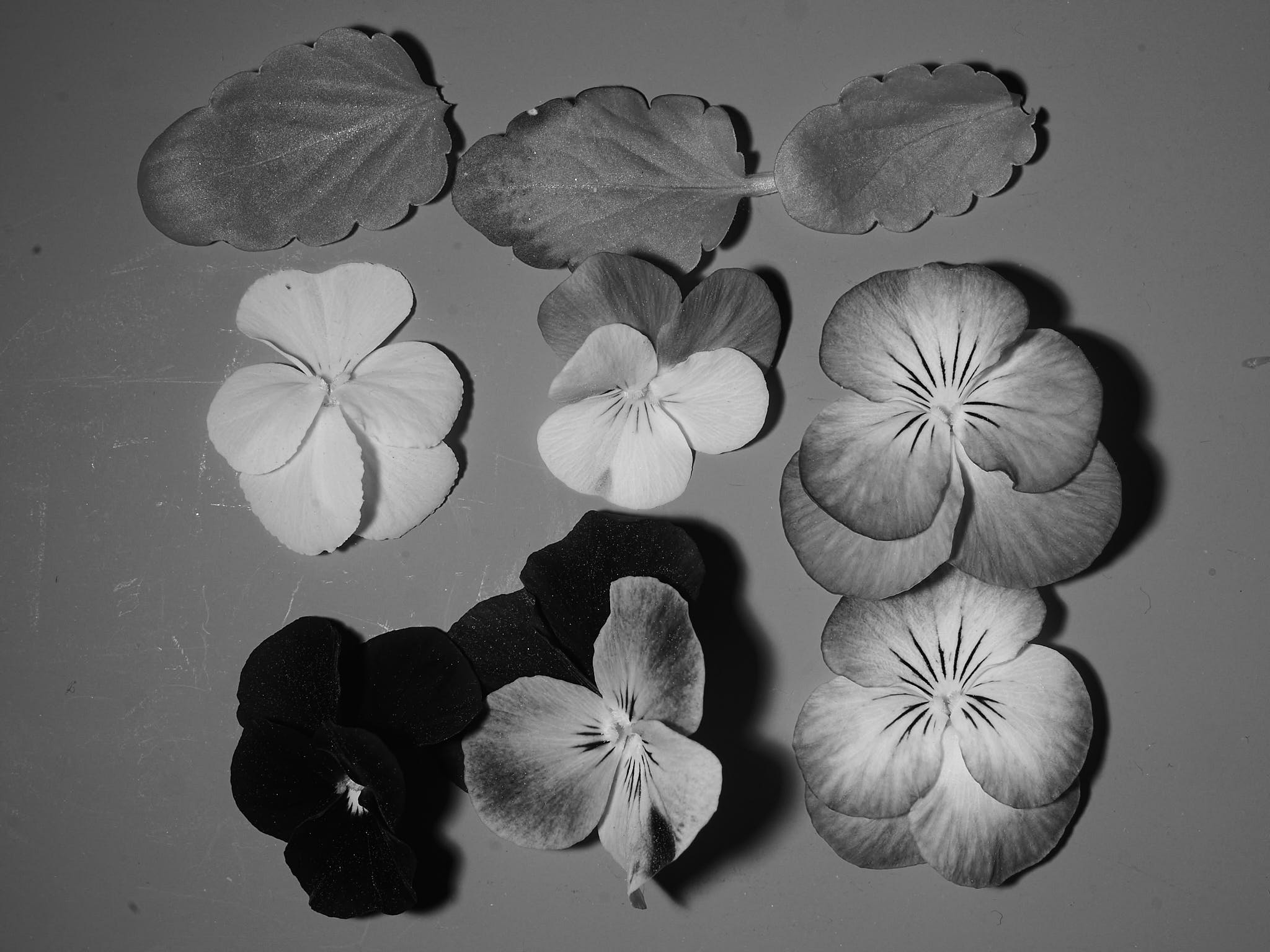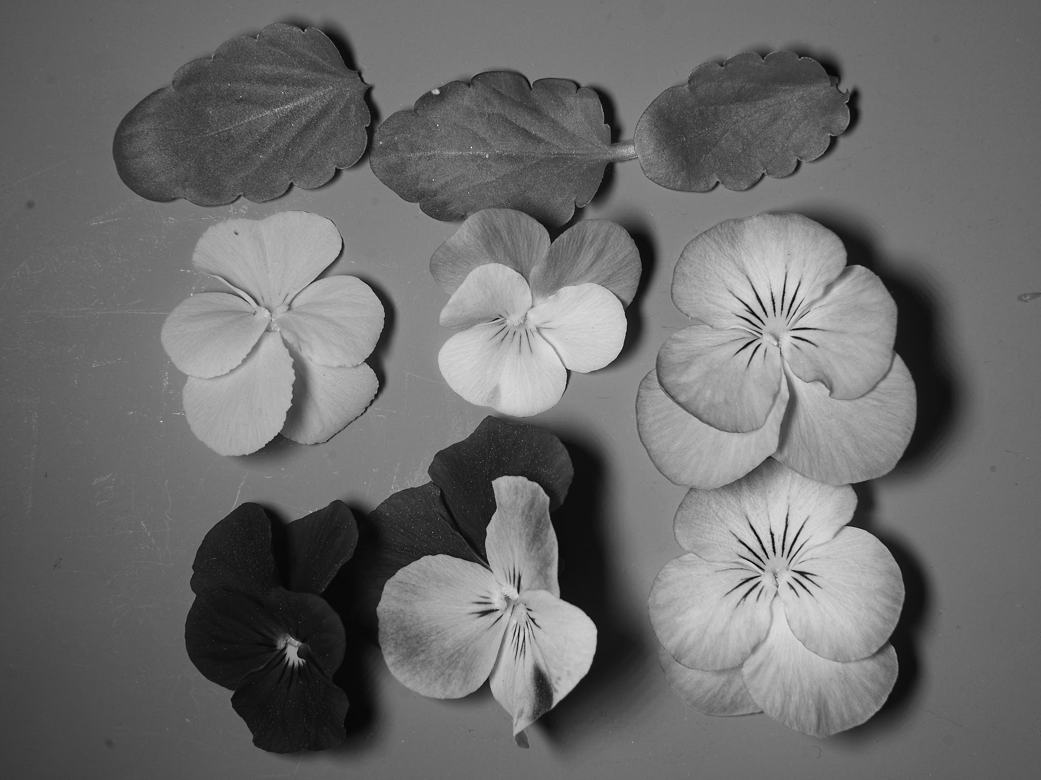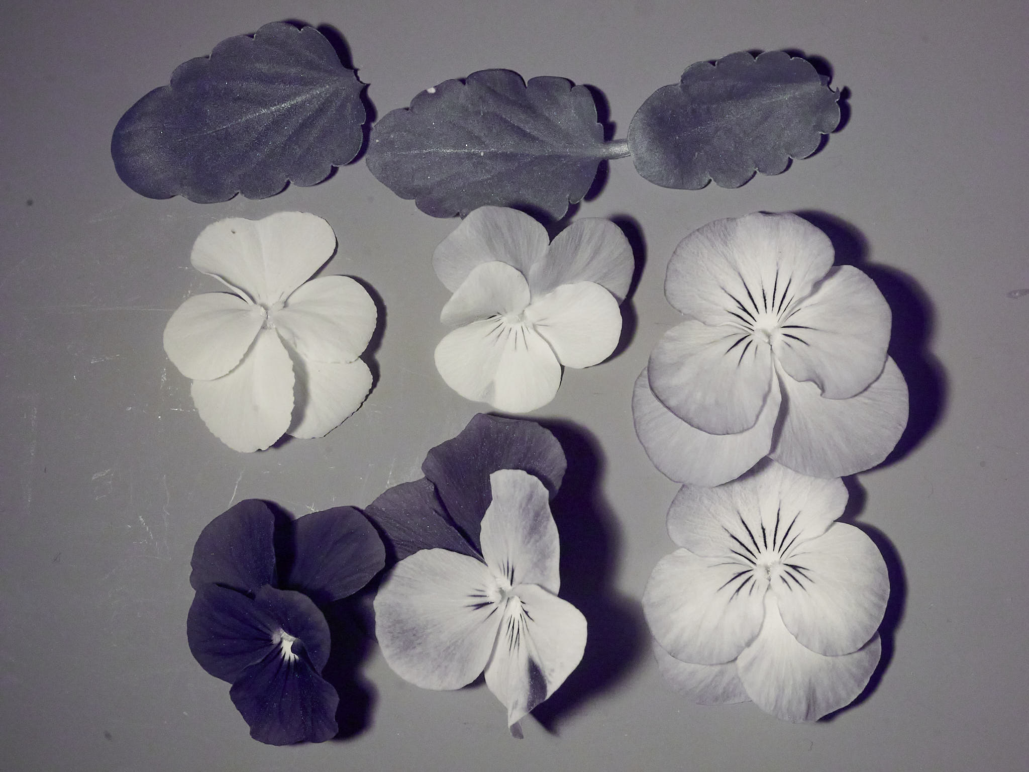 For the first test I picked four pansy flowers from the balcony. For each image I also took images with the LED switched off in the same room as dark control (Figure 4).