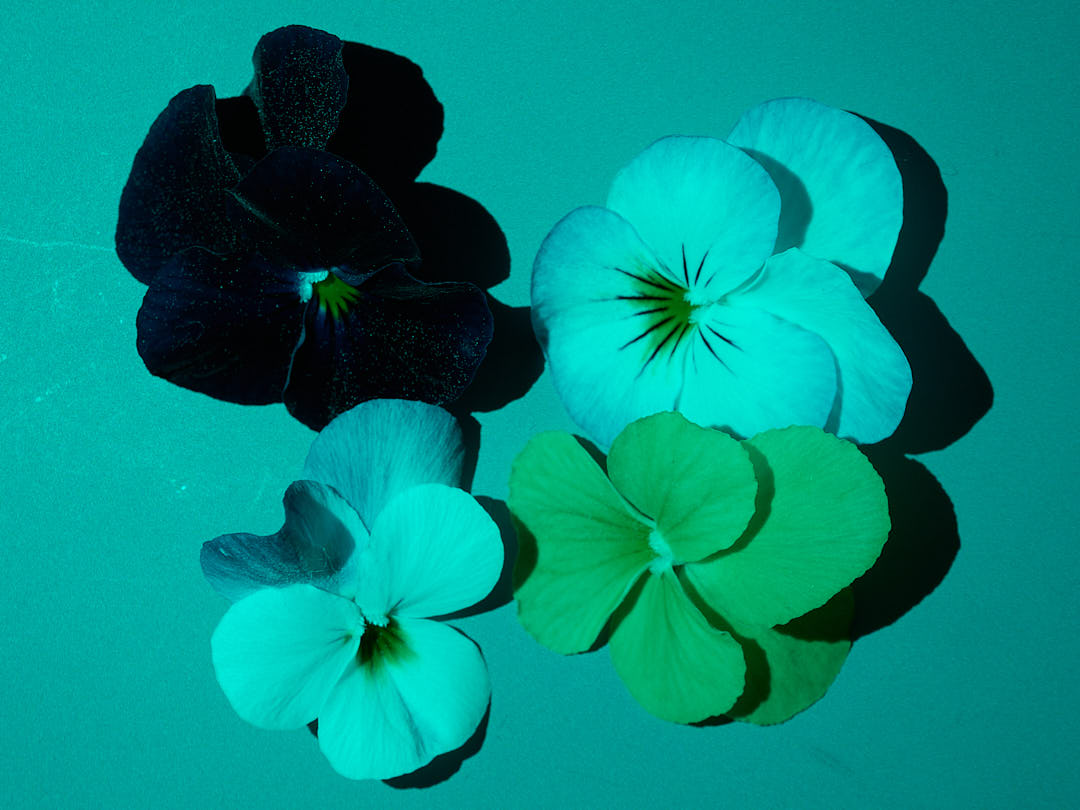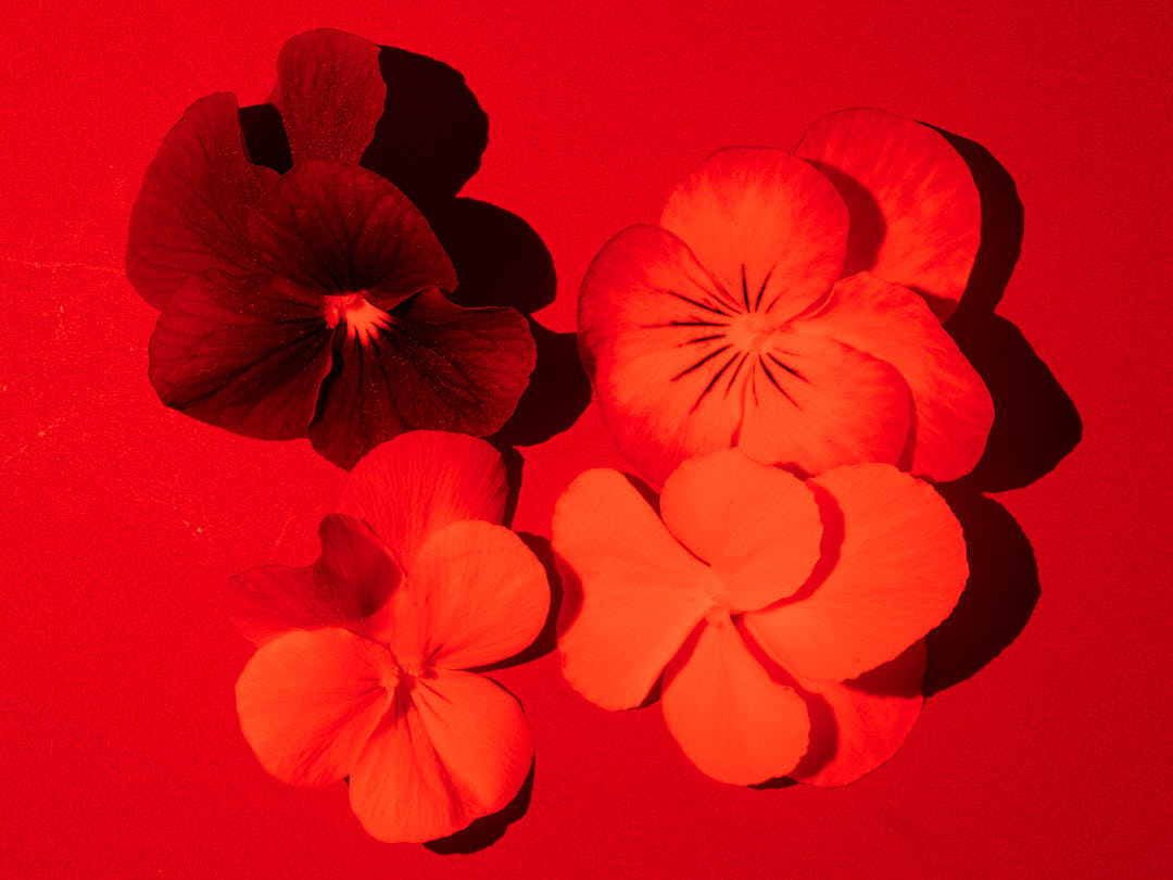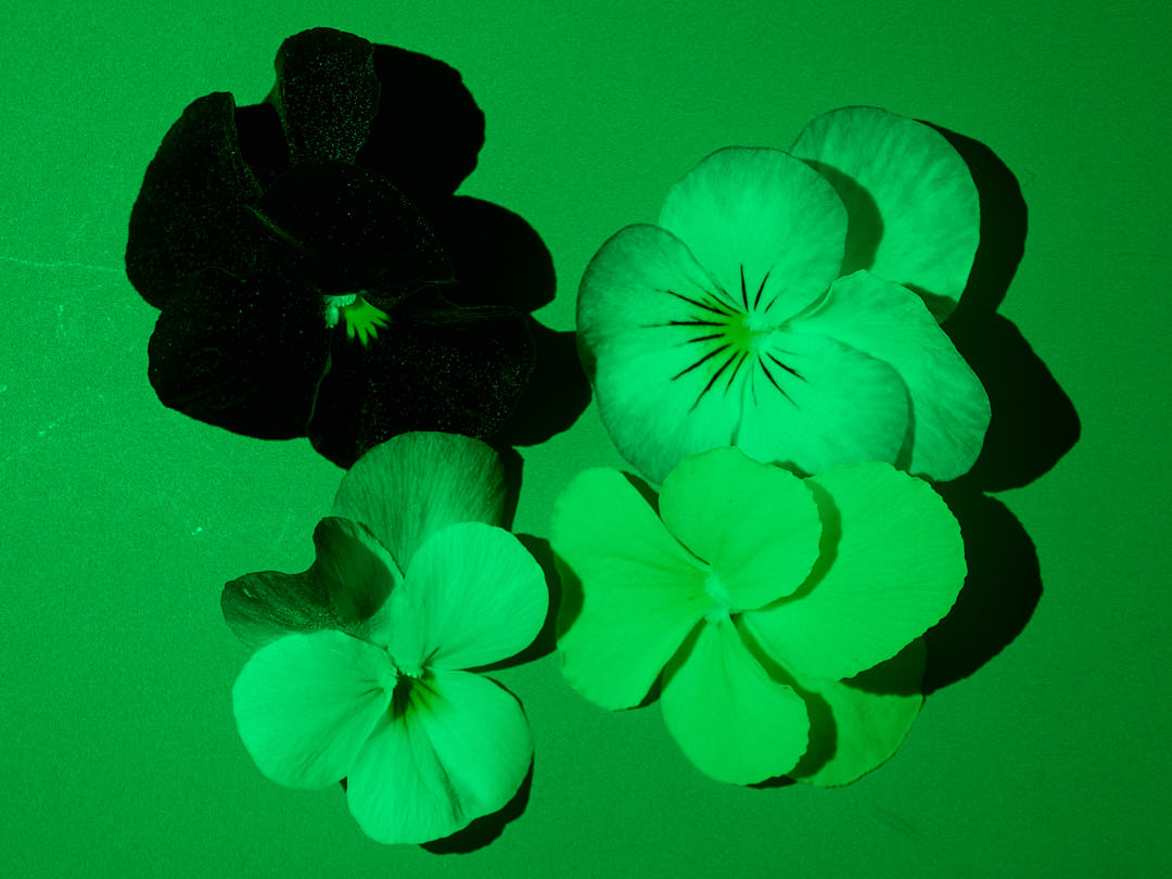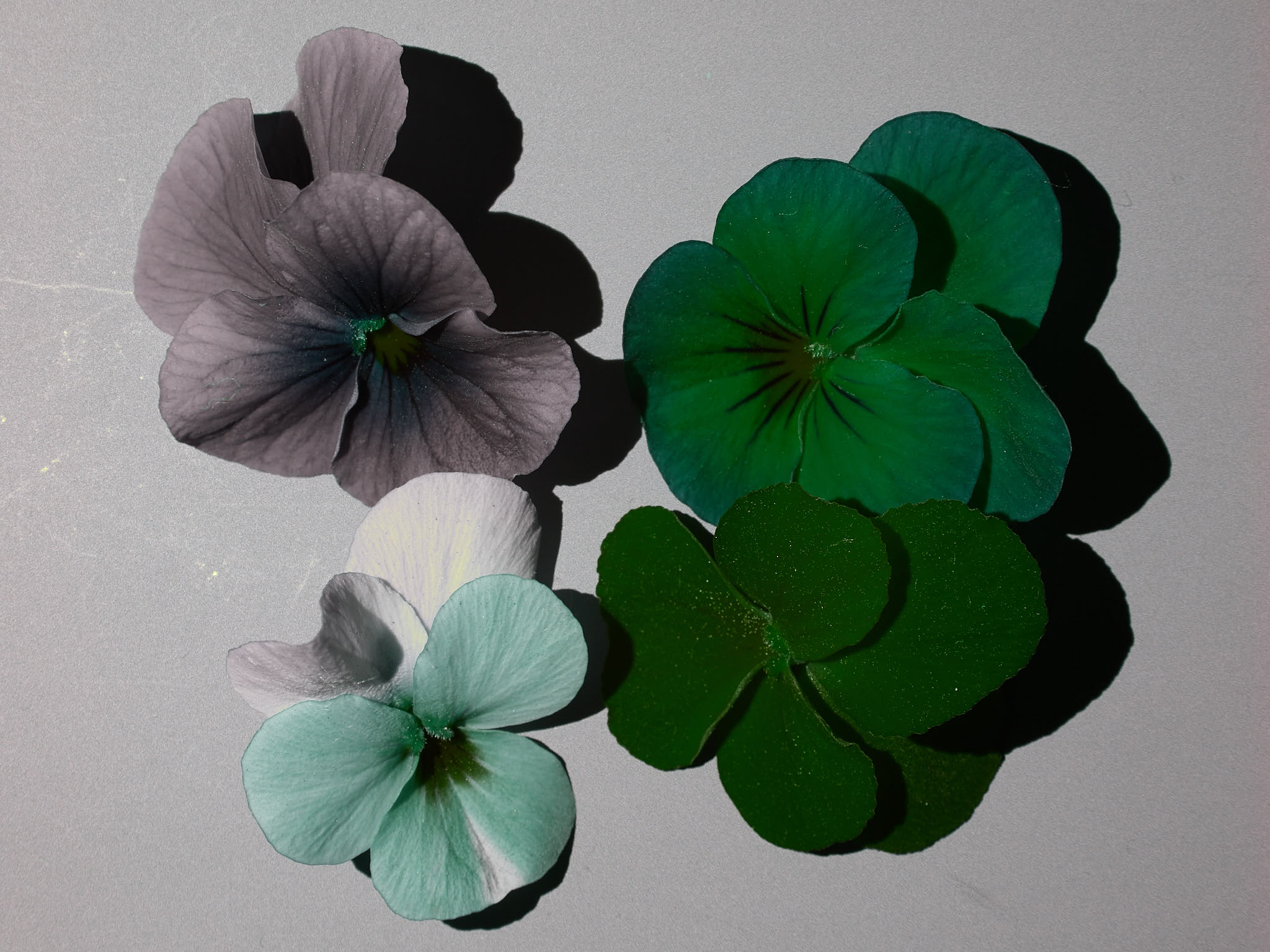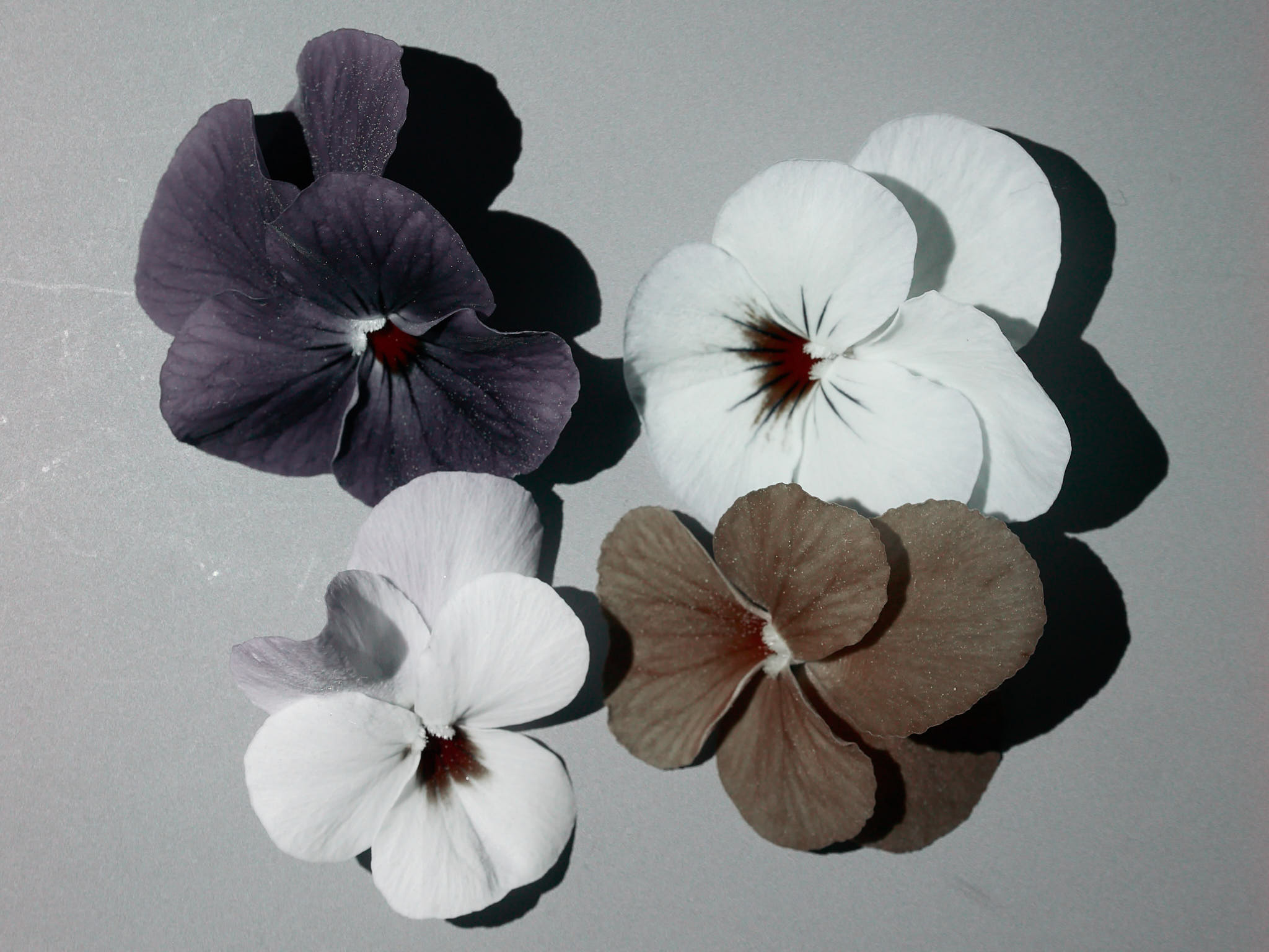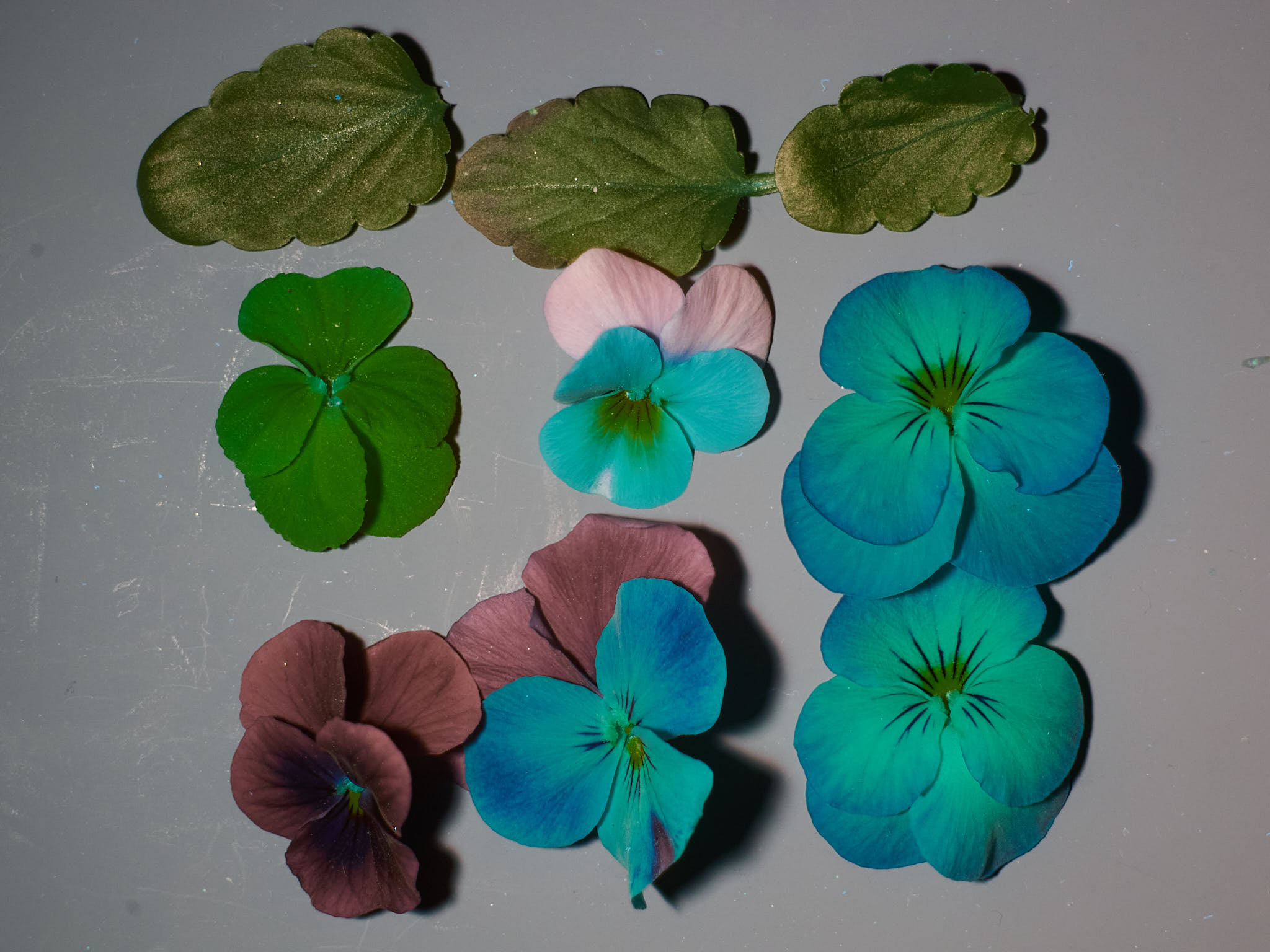 For the first test I picked four pansy flowers from the balcony. For each image I also took images with the LED switched off in the same room as dark control (Figure 4).