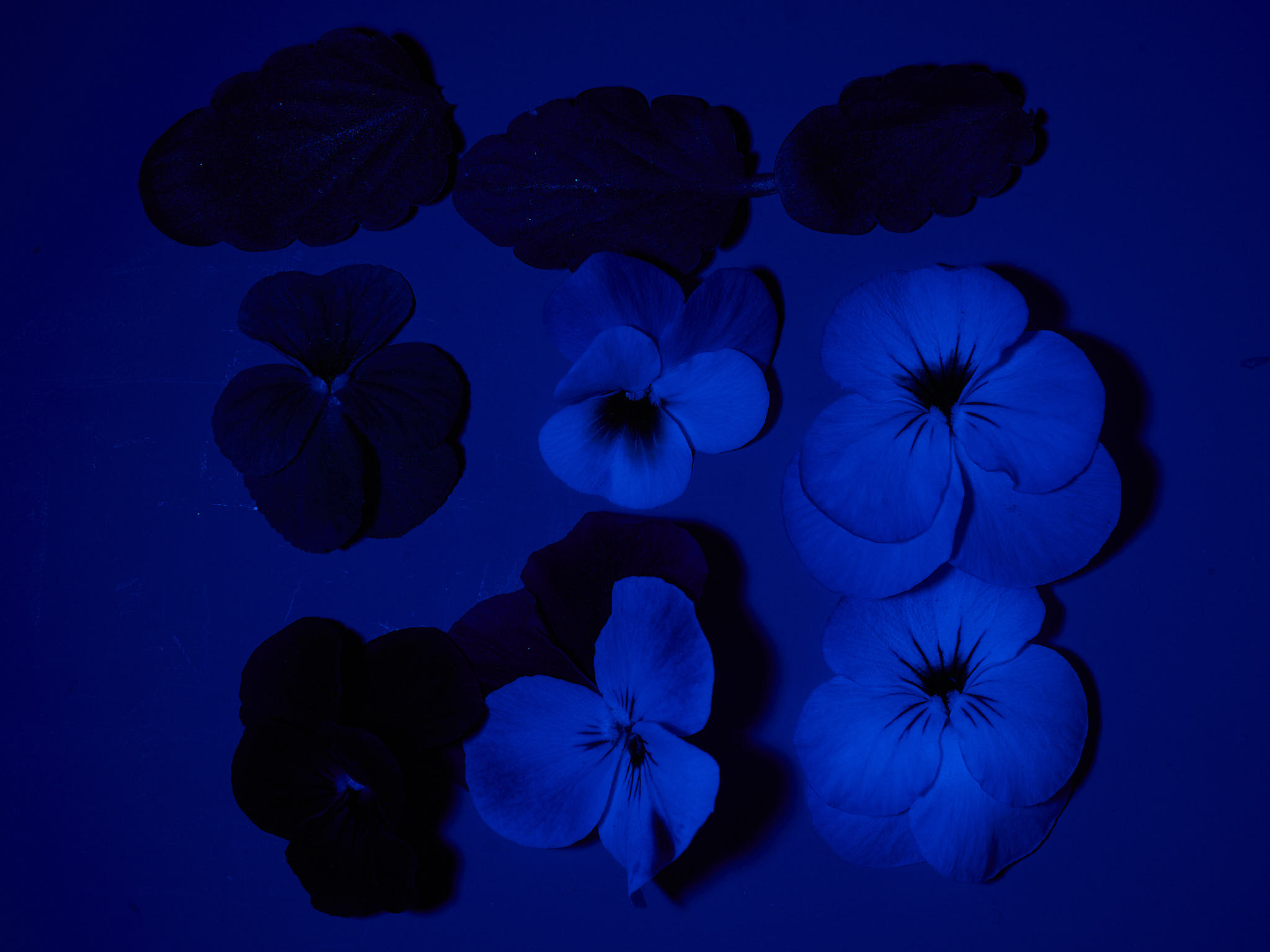 Individual colour images white balanced and exposure-matched on grey background. Photographs taken with an Olympus E-M1 camera converted to full-spectrum by removal of the sensor-cover IR- and UV-blocking filter and a Sigma 30 mm 1:2.8 Art MFT objective.