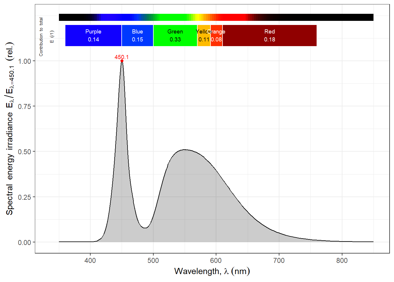 #| fig-cap: Emission spectrum of the white channel of the led array type LZ7-N4M100 from Led Engin (now Osram).