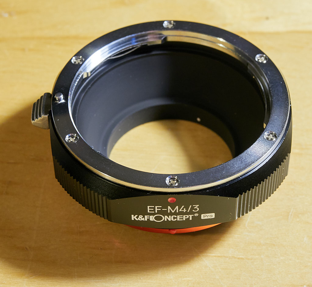 Today I received a “K&F Canon EOS-M4/3 PRO” adapter I bought at https://www.kentfaith.com. This is a new design advertised as being of high precision. I was specially interested as this is one of the very few or maybe the only series of relatively low cost adapters with a non-reflective black interior finish. This is is important to prevent reflections that otherwise degrade image contrast or create flare and ghost images. Please see Black anodised aluminium in IR and Commlite products: how I wasted my money..